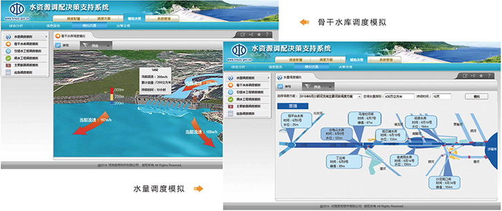 水量调配决策管理系统面向决策者需要,针对水利工程运行管理和调度决策特点,利用二维、三维GIS可视化技术和水文计算、水量调度、系统优化模型等技术手段为编制水量调度方案和监督调度方案的实施提供决策支持,为水资源调配管理各项工作提供信息服务、分析计算、模拟仿真等功能,实现水资源调度决策和运行管理自动化的调度运行。